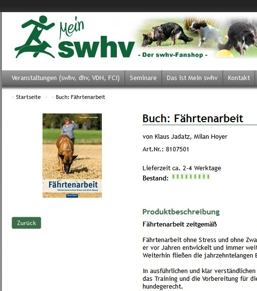 Titelbild Sachbuch Fährtenarbeit von Klaus Jadatz und Milan Hoyer